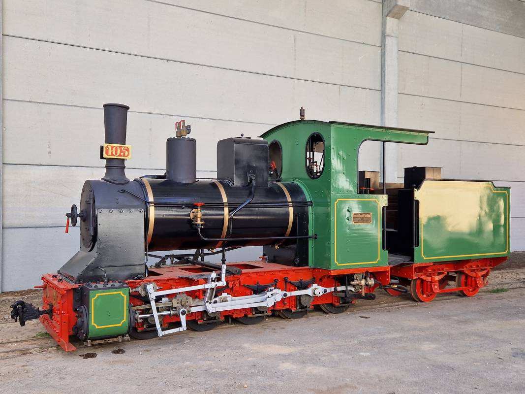 La locomotora AM 105 va arribar al Museu el 2024 després que el MNACTEC, el seu propietari, la cedís al nostre museu. Fou sotmesa a una restauració funcional en els propis tallers de l’APPFI. Aquesta va consistir en les proves de caldera i mecanisme incloent la substitució dels elements que havien estat danyats, es van construir nous aparells de xoc i tracció, plaques, fars i, finalment, es va pintar. Es va posar en servei operatiu el mes de març de 2024.